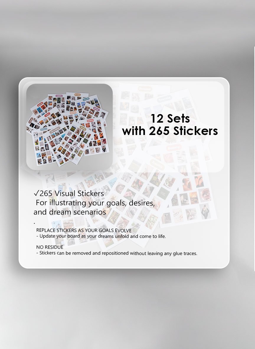 265 motivational stickers on 12 sheets – create colorful collages and inspiring visual compositions.